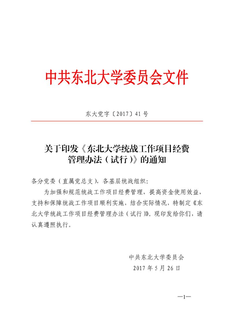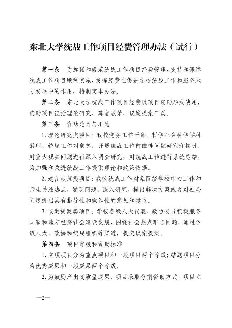 东北大学统战工作项目经费管理办法(试行)